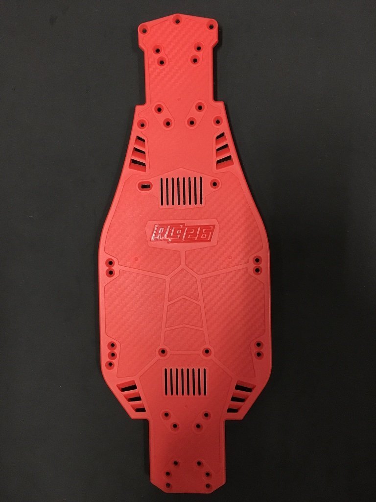 ●メインシャーシ裏面に立体的なデザインを施工しカーボン調デザインをあしらう事で高級感を演出します。また中心部には「RC926」ロゴで更なるオリジナル性と所有感も満載。