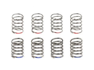 【 RCカーの性能アップやセッティングに役立つパーツです 】 前後のアップライト用スプリング(BA11)に換えて使用します。ソフト(識別色赤色)、ハード(識別色青色)を各4本ずつセット。路面に合わせたセッティングが楽しめます。