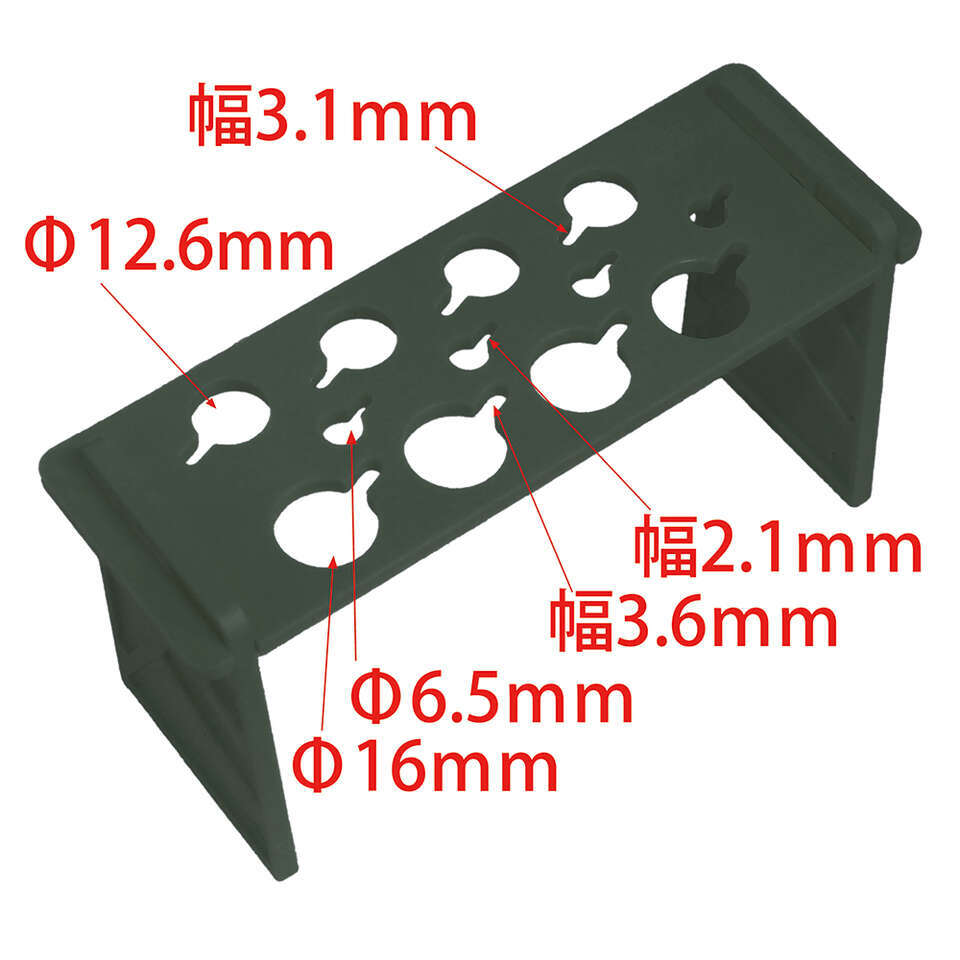 Φ6.5mmホール×4、Φ12.6mmホール×4、Φ16mmホール×4を設け、ダンパーの本体やダンパーのシャフトを保持する設計となっており、様々なサイズのダンパーに対応します。